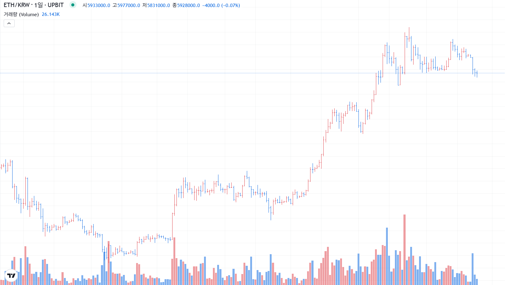 - 세로선: 고가 ↔ 저가